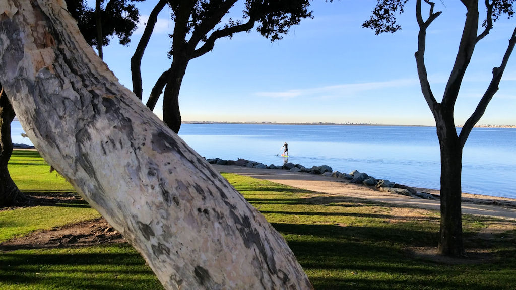 As nice as the RV park was, the main attraction here for us was the adjacent waterfront park and marina. This became a daily hangout and the perfect setting for our long morning dog walks.