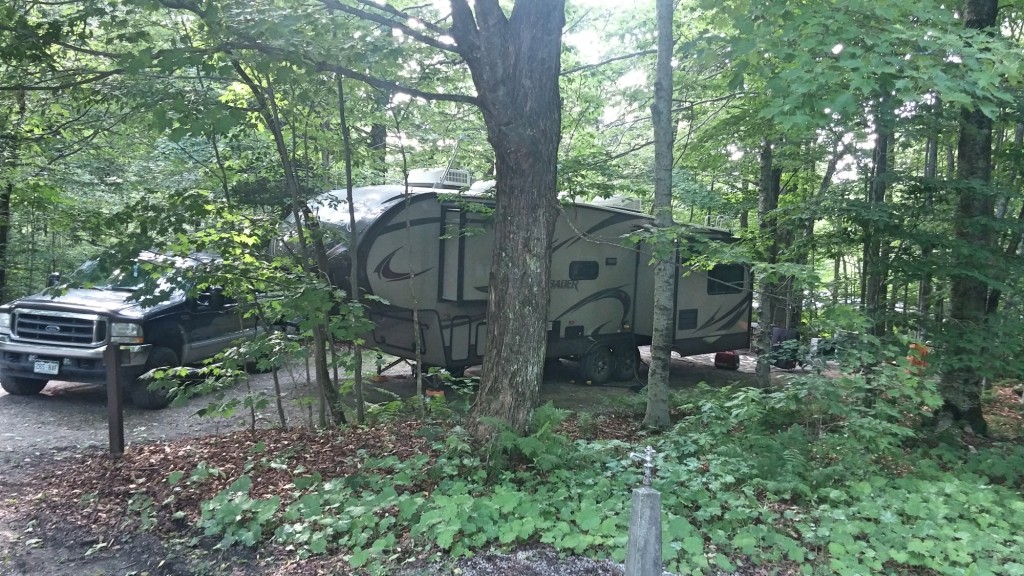 From there we were off to spend the weekend in the mountains in Vermont. We picked Woodford State Park and we scored the last available spot that could accommodate our rig.  Finally, a no hookup site in the woods where the weather was perfect and we got to do some real camping!  We were about the biggest rig in the park which was mostly tent campers and smaller trailers but we did fit, just barely.